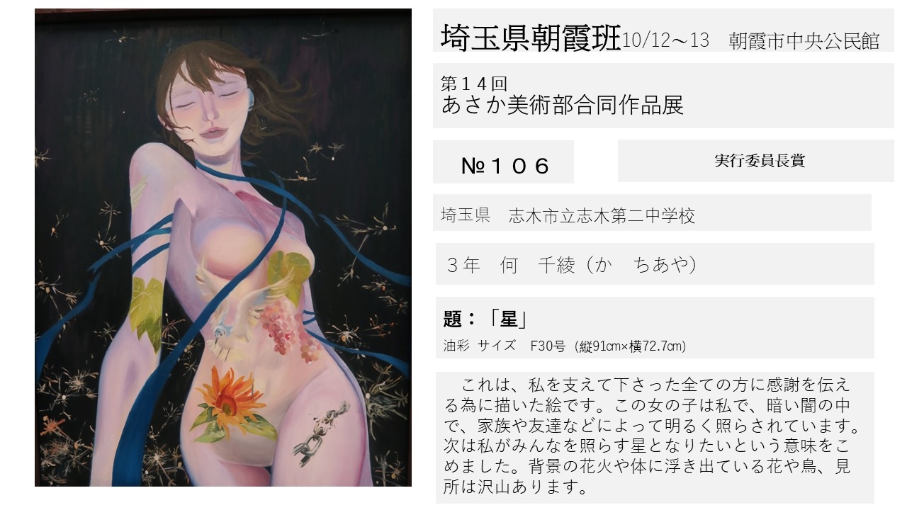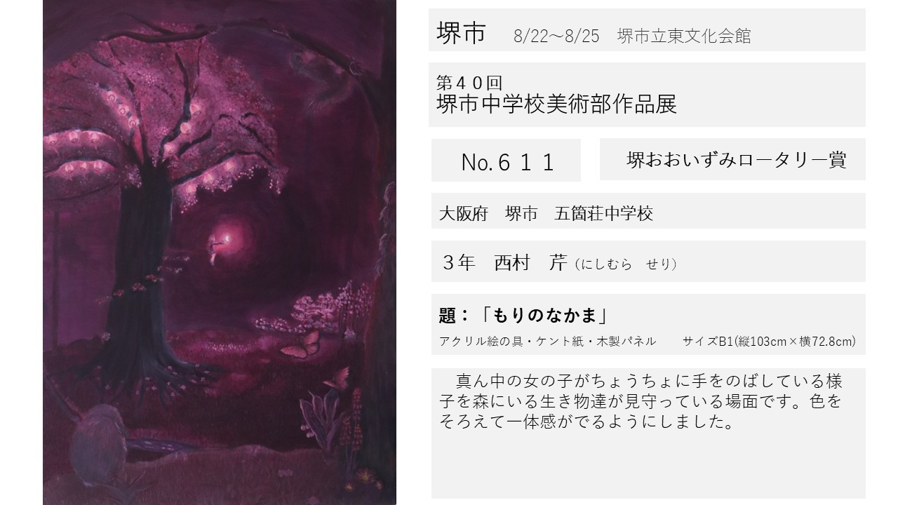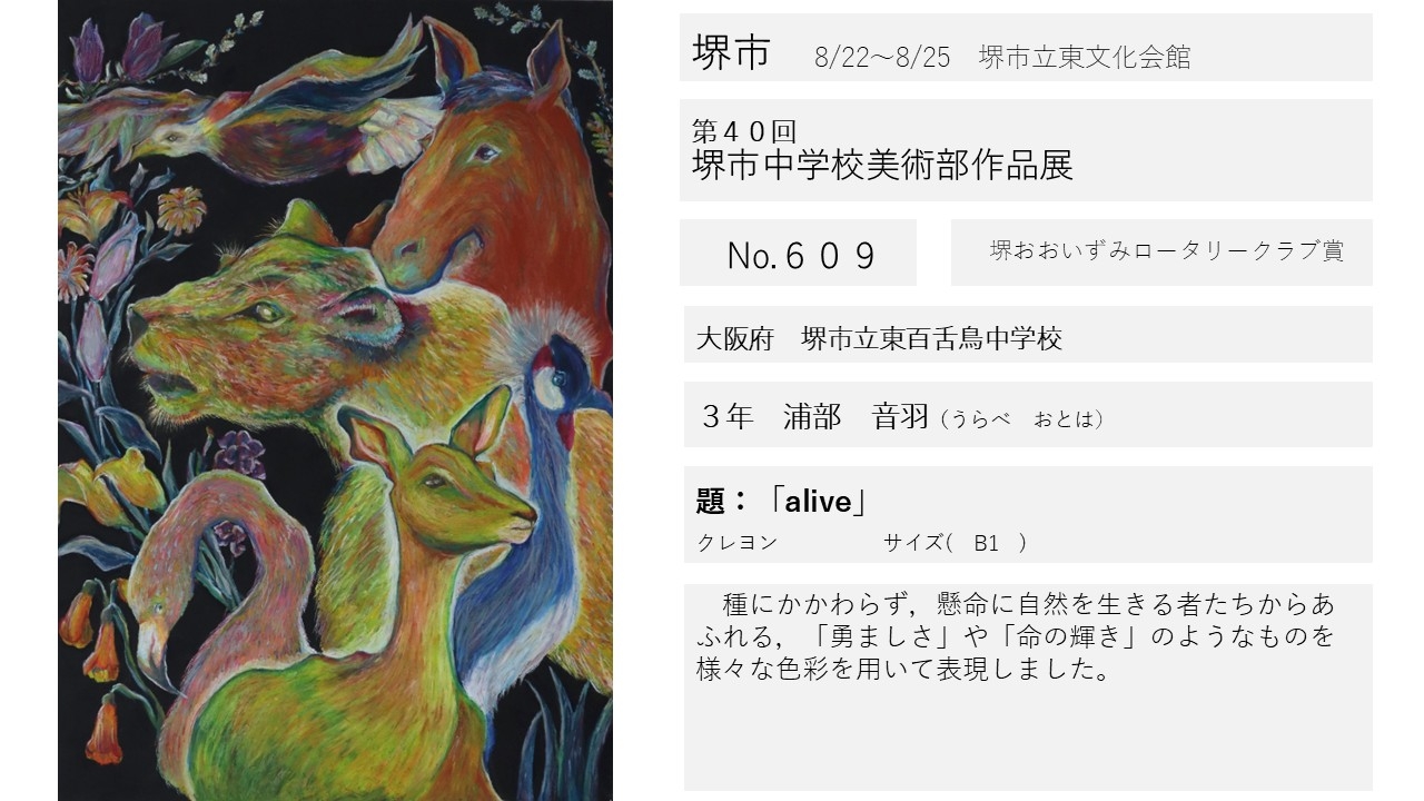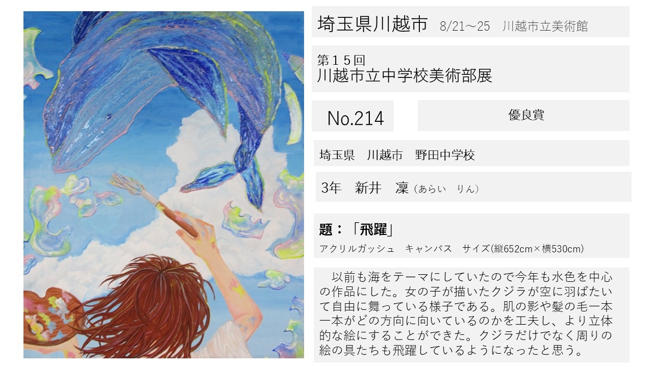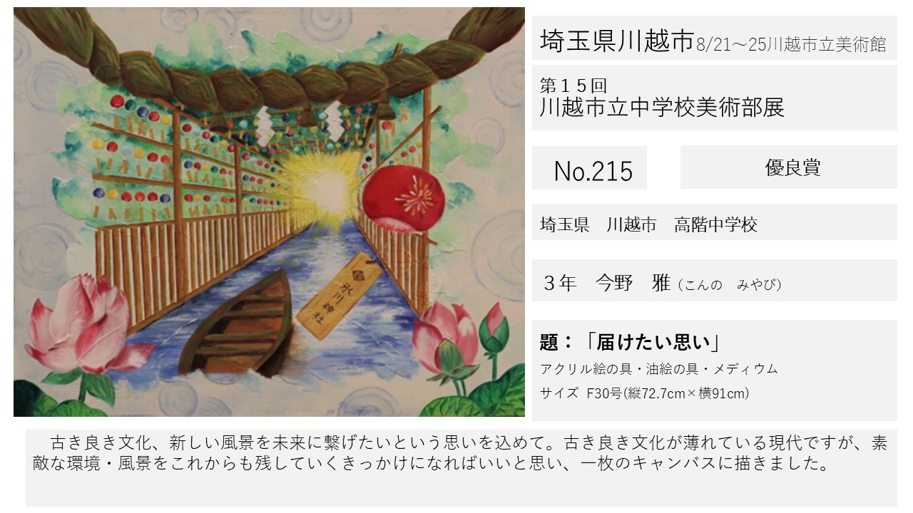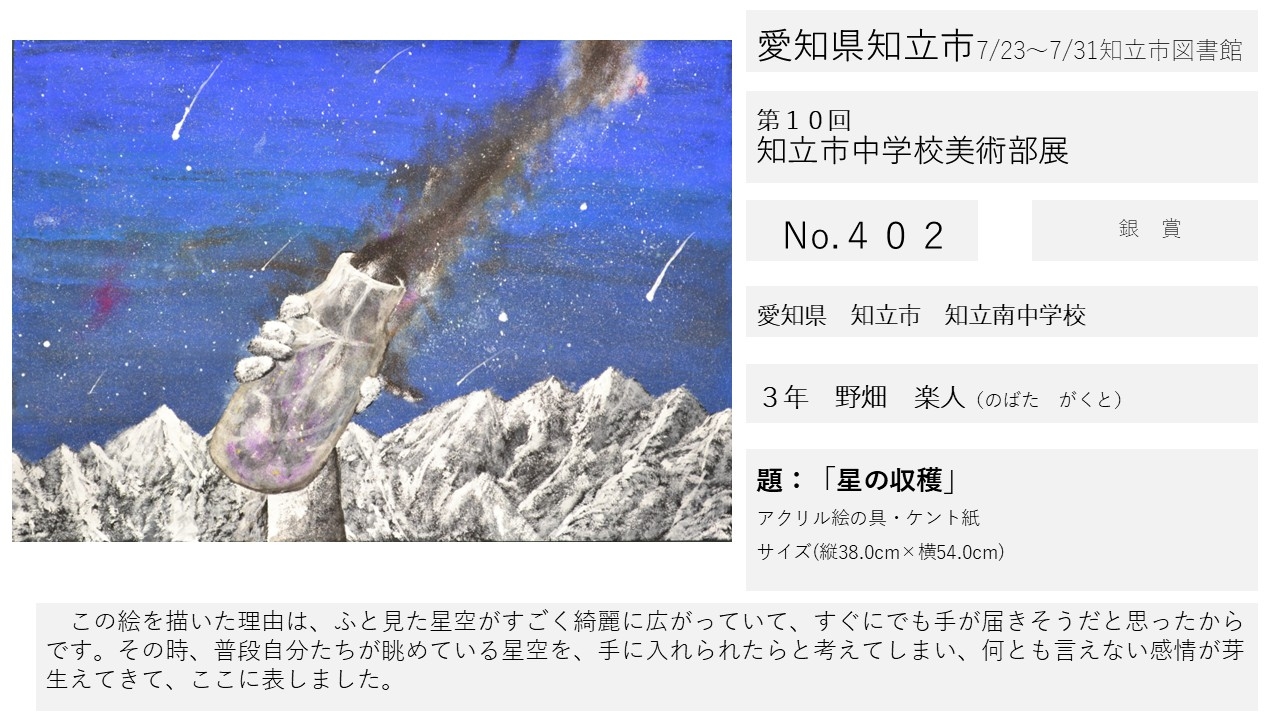 ・作品画像をクリックすると、どのような思いで描いたのか、作品解説を読むことができます。また、作品サイズや画材なども参考にしてください。作品や解説などから、よいと思う作品にいいね投票をお願いします。